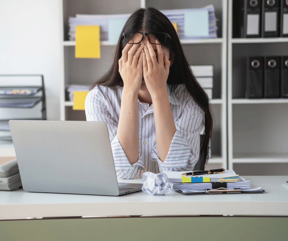 Red Flags: You are working extra hours without extra pay or expecting yourself to accomplish far more than is logical. As the stress continues you start to lose focus and you begin neglecting self-care (e.g., exercising, eating healthy foods).Your productivity and quality of work suffer.