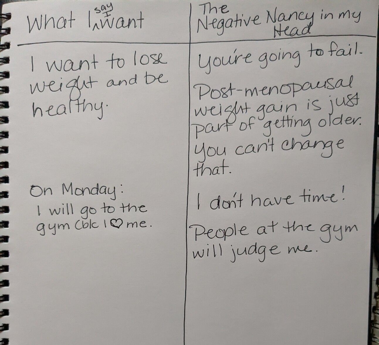 Anytime a negative excuse or thought pops into your head, write it down in the other column/row.