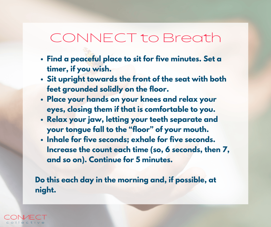 Below I suggest a few of our tried and true CONNECT practices with some tweaks to aid you in your healing process.